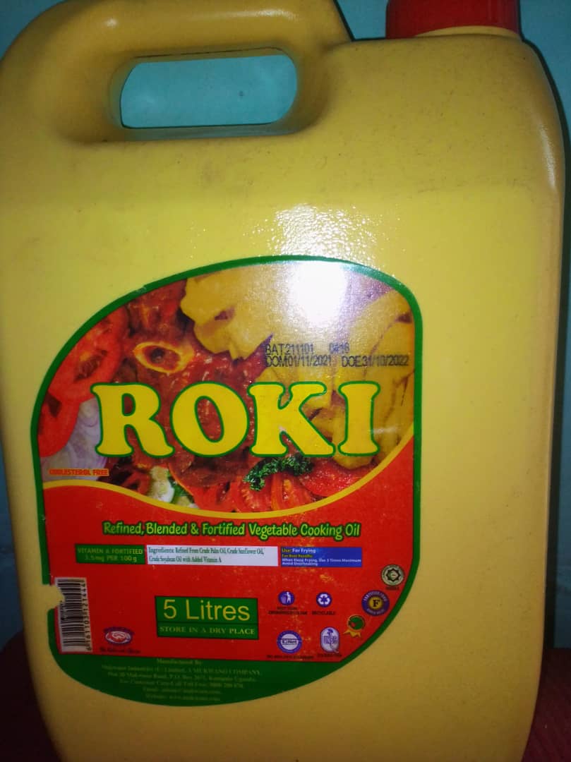 A 5 Litre jerrican of Roki refined and blended fortifies cooking oil. |