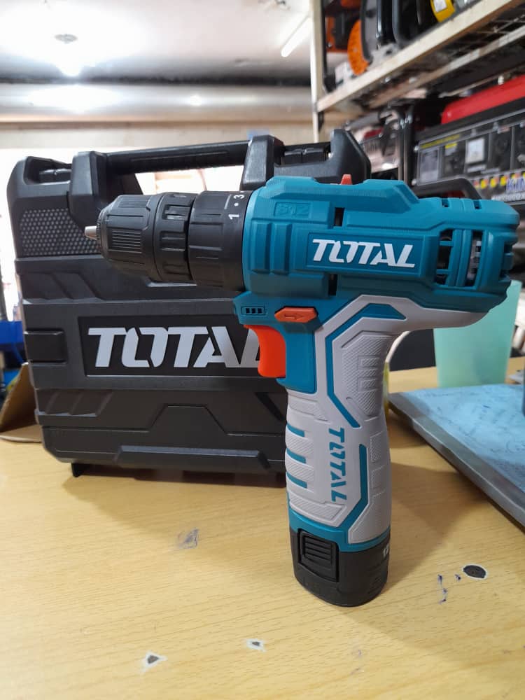A rechargeable drill which can be carried and used to perform duties in areas without electricity supply. It comes with two spare batteries that can be relied on to accomplish any work successfully. It is used for making holes in walls and screwing or unscrewing nails in walls or wood. |