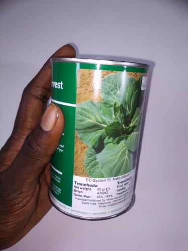 A tin of 50g of sukuma wiki seeds from Top harvest. |