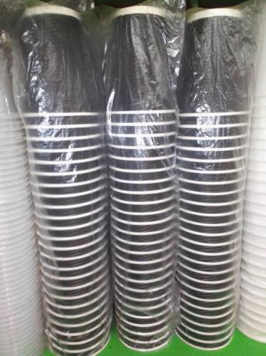 A pack of 25 pcs of disposable black plastic coffee cups of 400ml. |
